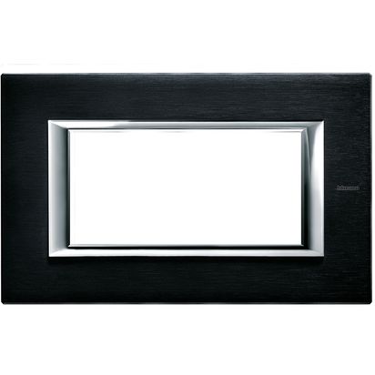 Placa decorativă Axolute cu 4 module, finisaj antracit satinat, este ideală pentru personalizarea instalațiilor electrice. Fabricată din aluminiu de înaltă calitate, această placă oferă un design elegant și modern, potrivit pentru diverse interioare.