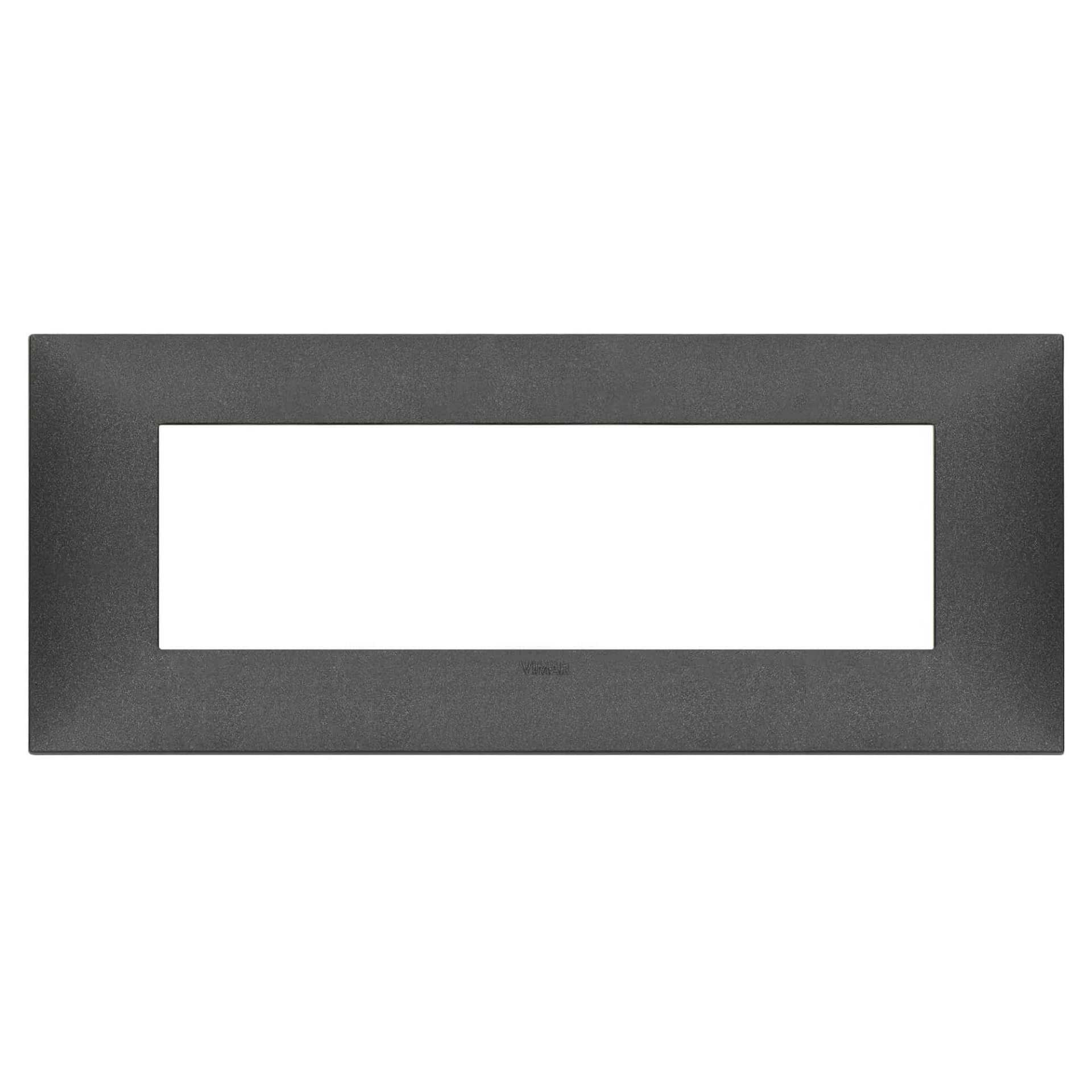 Ramă decorativă Vimar NeveUp Matt pentru 7 module, fabricată din tehnopolimer cu finisaj carbon mat. Design modern și elegant, potrivită pentru montaj orizontal și vertical.