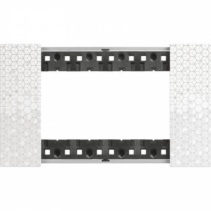 Rama ornament PIXEL Living Now cu 4 module, fabricată din tehnopolimer, oferă un design modern și elegant. Este destinată montajului încastrat și are un finisaj mat de culoare albă.