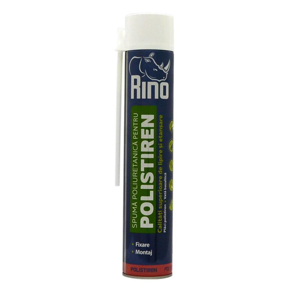 Spuma poliuretanică adezivă RINO Polistiren este un produs monocomponent, destinat fixării plăcilor de izolație din polistiren și vată bazaltică în timpul lucrărilor de izolare termică a clădirilor. Aderă excelent la majoritatea materialelor de construcții, precum beton, cărămidă și tencuială, cu excepția suprafețelor din Teflon, polietilenă și silicon. După uscare, spuma asigură o izolare fonică și termică eficientă. Este ideală pentru montarea panourilor de izolație pe fațade și fundații, atât în construcții noi, cât și în renovări, precum și pentru fixarea plăcilor de vată bazaltică, instalarea plăcilor pe acoperiș și izolarea țevilor și tubulaturii.