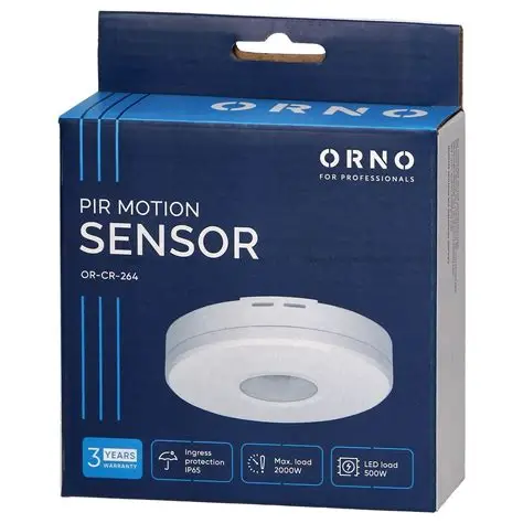 Senzor de mișcare ORNO OR-CR-264 cu unghi de detecție de 360°, rază de acțiune de 8m, IP65, potrivit pentru controlul automat al iluminatului.