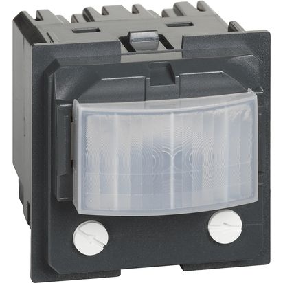 Întrerupător cu senzor de mișcare infraroșu pasiv BTicino Living Now K4432, compatibil cu lămpi LED, cu temporizator reglabil și circuit crepuscular cu prag variabil.