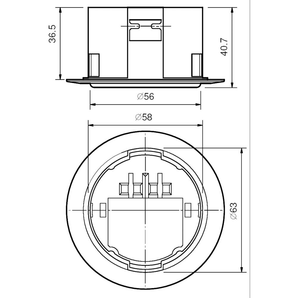 Senzor de mișcare Finder încastrabil în tavan, ideal pentru supravegherea spațiilor interioare, cu unghi larg de detectare și temporizare ajustabilă.