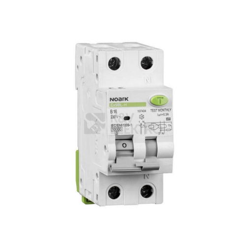 Disjunctor diferențial Ex9BL-H 1P+N B16 A 30mA pentru protecție împotriva supracurentului și curenților de defect.