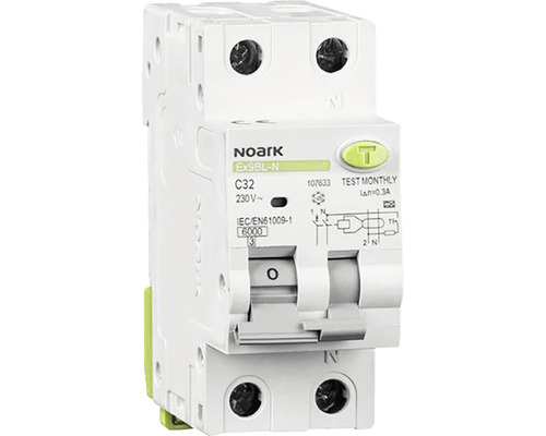 Disjunctor diferențial 1P+N, 32A, 30mA, curba C, 6kA, NOARK Ex9BL-N.