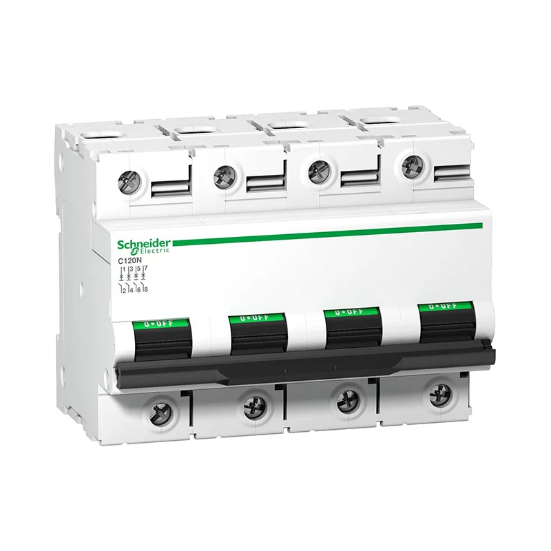 Siguranță automată modulară Schneider Electric C120N, 4P, 80A, curba C, capacitate de rupere 10kA la 415V.