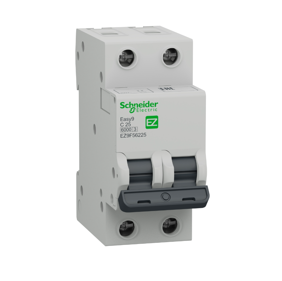 Întreruptor automat Easy9 2P 25A, 4500 A, curba C, pentru protecția circuitelor rezidențiale.