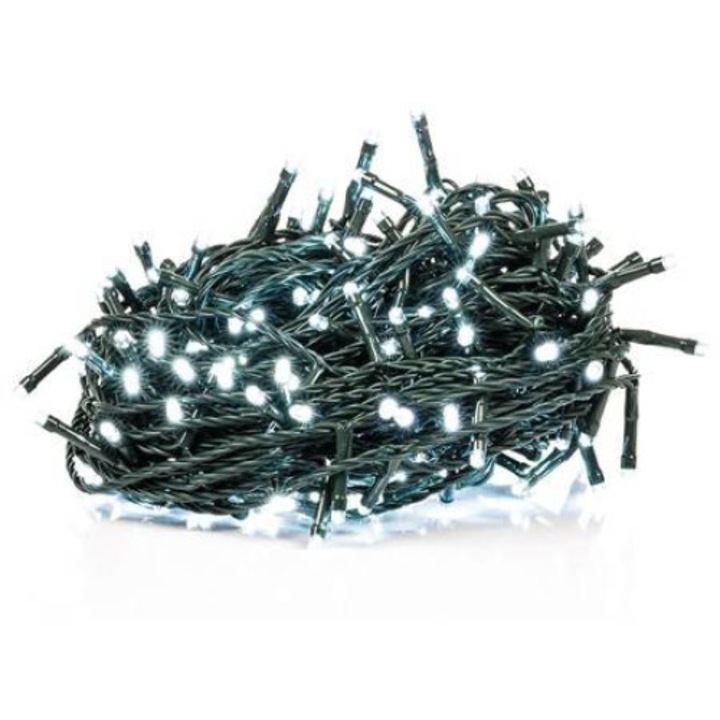 Sir de iluminat festiv RETLUX cu 200 LED-uri alb rece, lungime 20m, pentru interior și exterior.