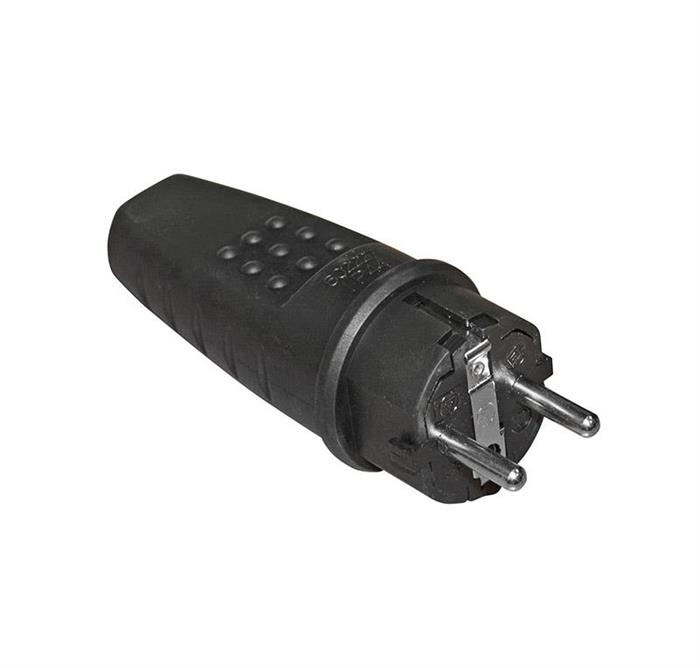 Stecher Schuko de tip 'A' cu contact de protecție (CP), fabricat din PVC de culoare neagră. Ideal pentru utilizare în diverse aplicații electrice, oferind o conexiune sigură și durabilă.