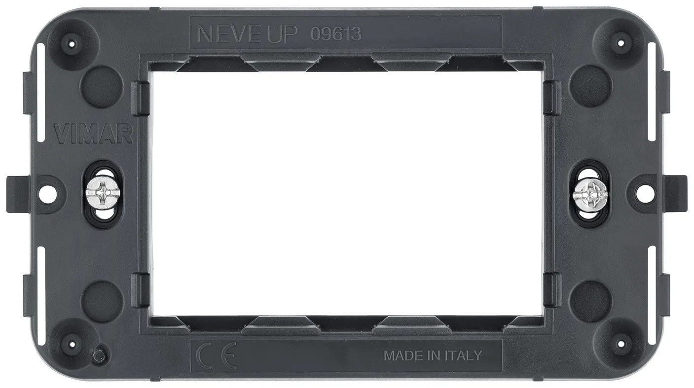 Suport orizontal Vimar NeveUp 2/3M cu șuruburi pentru montaj sigur al aparatajului modular.