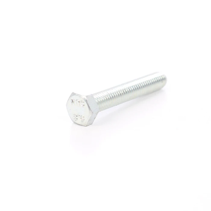 Șurub cu cap hexagonal DIN 933, clasa de rezistență 5.8, dimensiuni M8x35 mm, zincat alb, ideal pentru fixări și asamblări diverse.