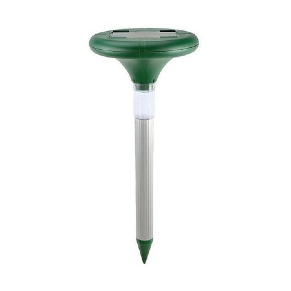 Țăruș solar anti-cârtiță cu lumină LED, eficient împotriva rozătoarelor subterane.