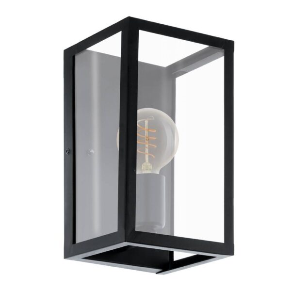 Aplica Eglo Charterhouse 49394, design vintage, oțel negru și sticlă transparentă, dulie E27, max. 60W.