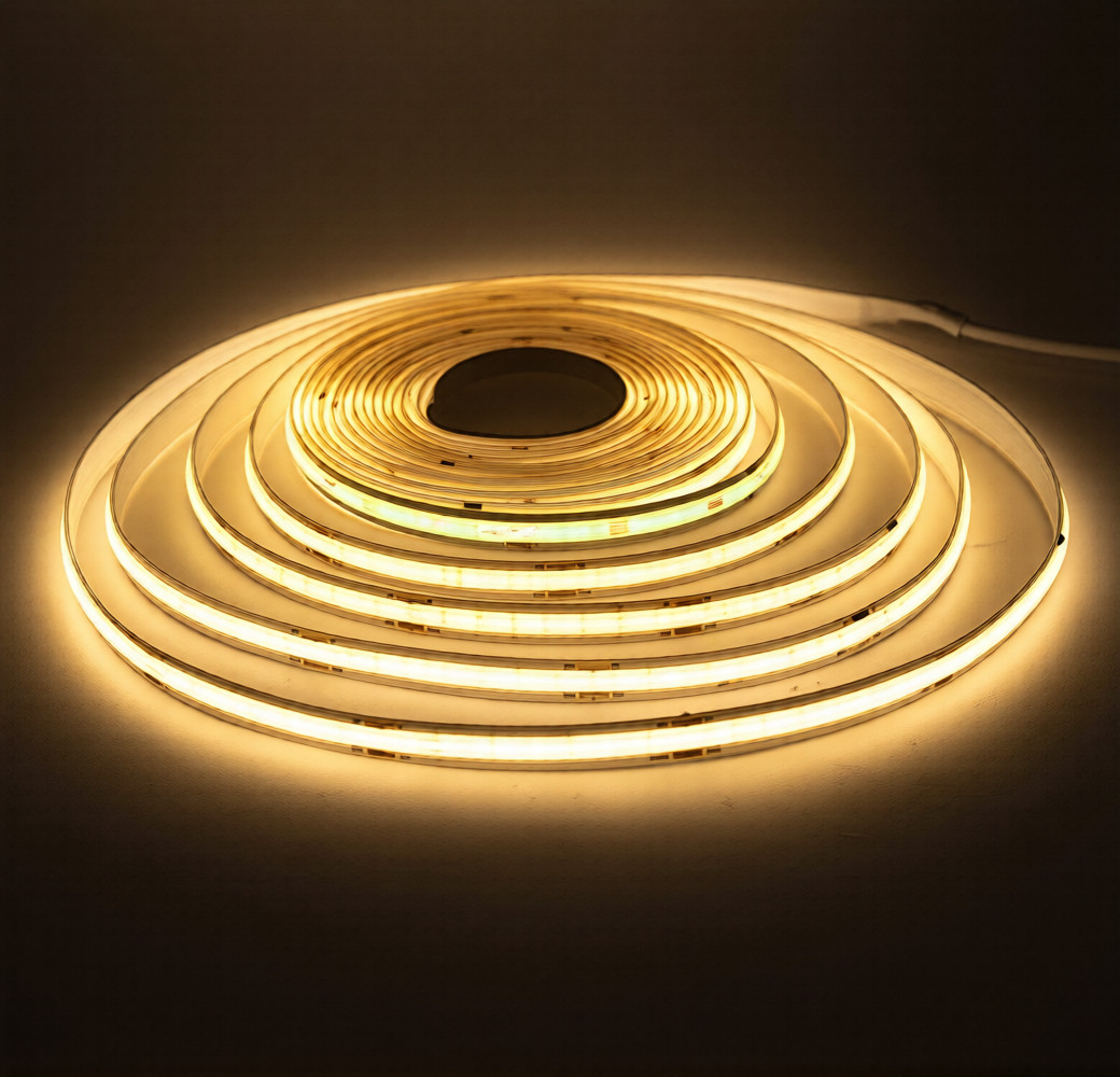 Banda LED COB de 14W/m, cu 528 LED-uri pe metru, oferă o iluminare continuă și uniformă, fără puncte vizibile, datorită tehnologiei Chip-on-Board (COB). Funcționează la o tensiune de 24V DC și are un grad de protecție IP20, fiind destinată utilizării în interior. Cu o temperatură de culoare de 3000K, emite o lumină albă caldă, ideală pentru crearea unei atmosfere primitoare.