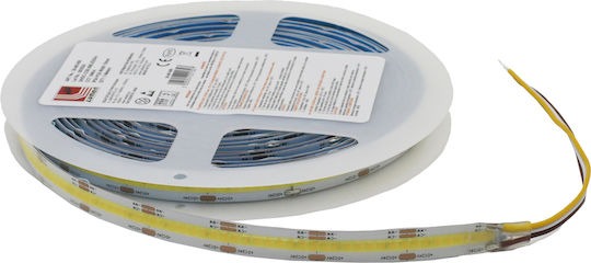 Bandă LED COB 14W, IP54, 24VDC, lumină CCT, flexibilă și autoadezivă, ideală pentru iluminat interior și exterior.