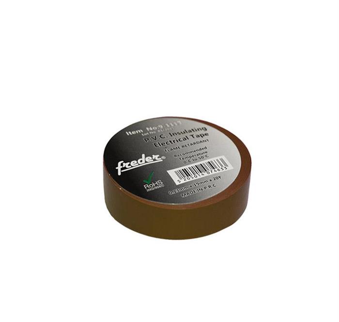 Bandă izolatoare PVC Freder, 0,13 mm grosime, 19 mm lățime, 10 m lungime, culoare maro, ideală pentru izolații electrice și protecția cablurilor.