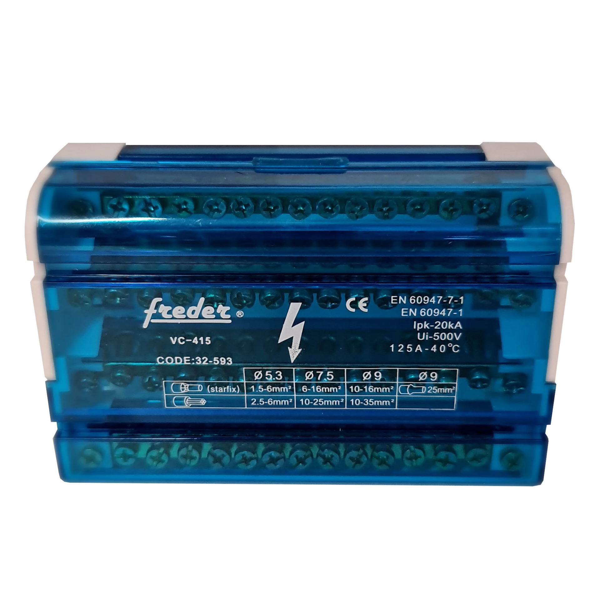 Bara de nul la cutie cu 4 bare și 11 poli, 125A, 100 x 88 x 50 mm.