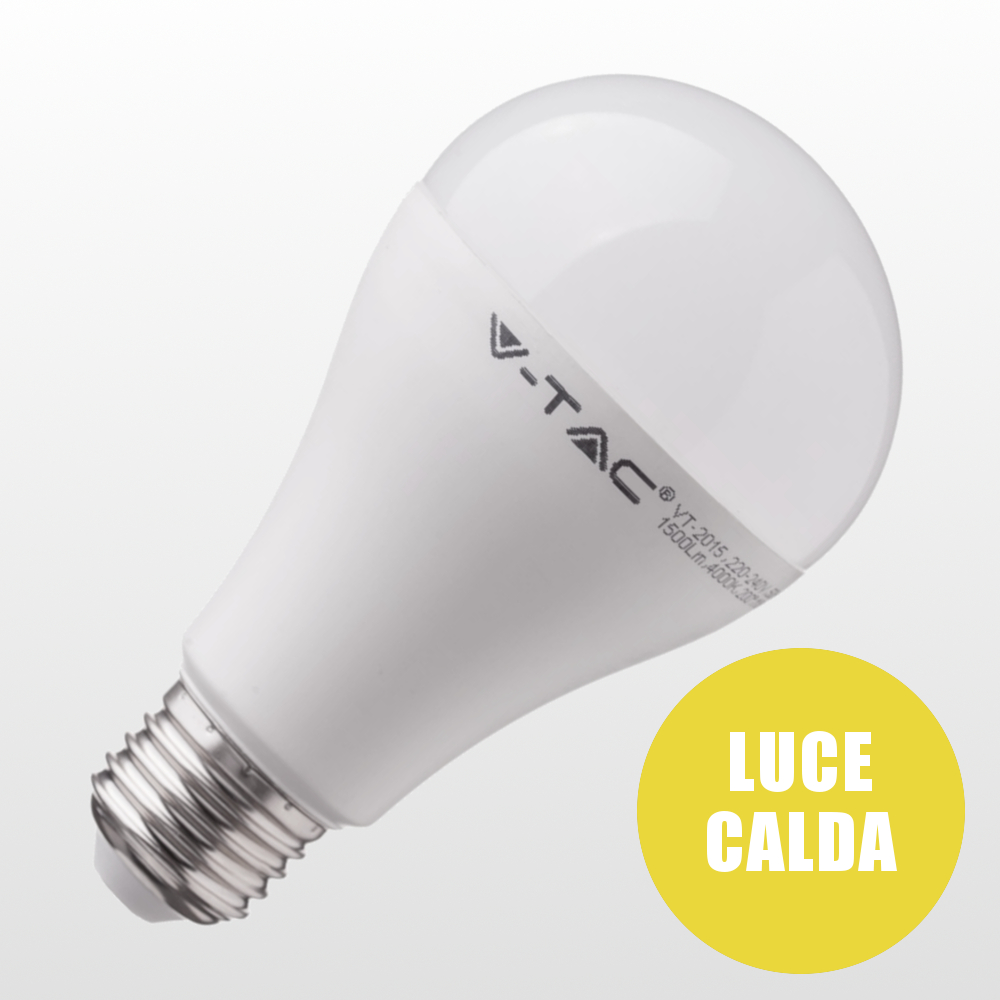 Bec LED V-TAC A65 E27 15W cu lumină caldă de 2700K, eficiență energetică ridicată și durată de viață extinsă.