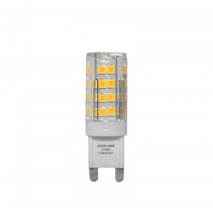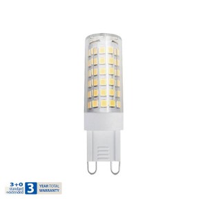 Bec LED SMD G9 5W cu lumină caldă, unghi de iluminare 360°, durată de viață 25.000 ore.