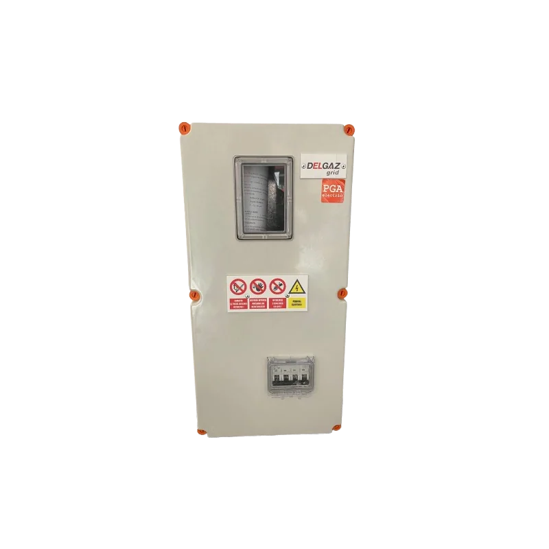Blocul de măsură și protecție trifazat (BMPT) PAFS A10 este destinat branșării abonaților individuali la rețeaua electrică de distribuție a furnizorilor de energie electrică din cadrul DELGAZ. Acesta permite contorizarea consumului de energie electrică și asigură protecția la scurtcircuit, suprasarcină și împotriva sustragerilor de energie electrică. Carcasa este realizată din poliester armat cu fibră de sticlă (PAFS), oferind rezistență mecanică și la foc conform standardului V0-UL94. Echipamentul include un întrerupător automat tetrapolar de 16A cu protecție termică și electromagnetică, cleme de șir pentru racordarea fazelor și nulului de lucru, precum și o bară pentru nulul de protecție PE din cupru staniat. Blocul este livrat împreună cu un set de instalare pentru fixarea pe perete, carte tehnică, schemă electrică, certificat de garanție și declarație de conformitate. Contorul nu este inclus.