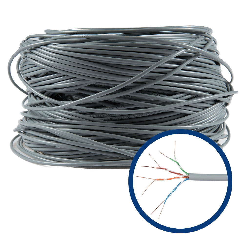 Cablu de rețea Cat. 5e U/UTP 4 perechi PVC 305m gri, ideal pentru cablare structurată.