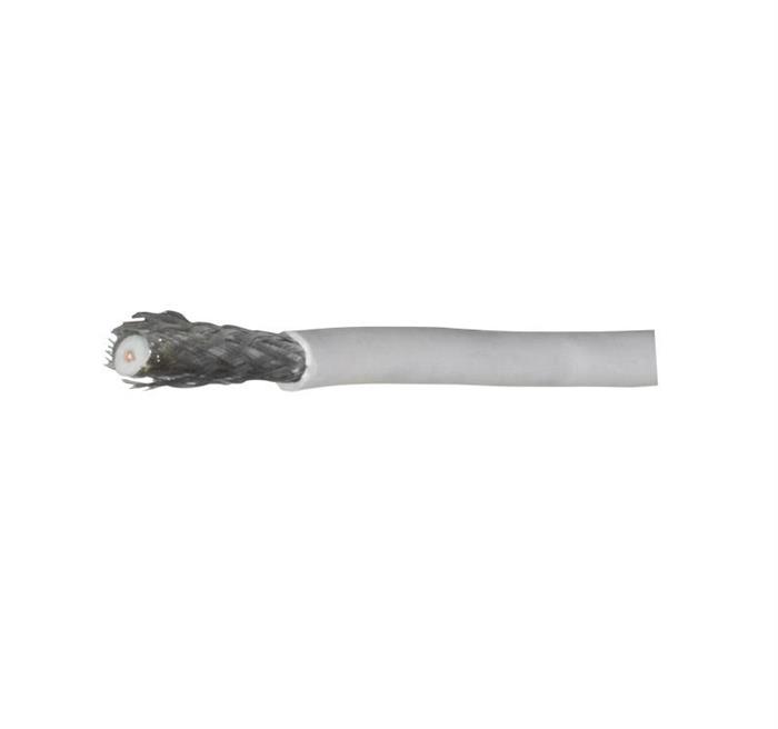 Cablu coaxial RG6U-AL-AL alb, conductor CCS 1 mm, ecranaj folie și tresă aluminiu, impedanță 75 Ohm, ideal pentru transmisii TV și satelit.
