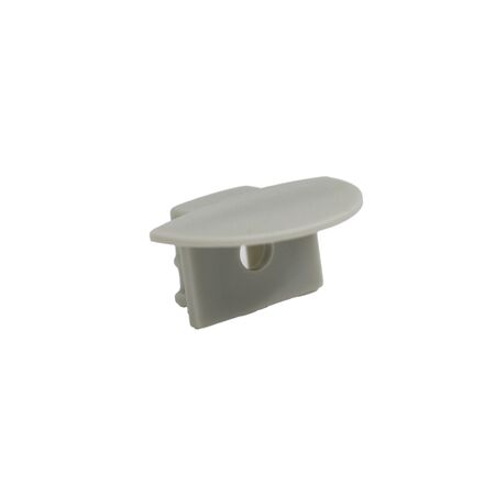 Capac terminal alb cu gaură pentru profil de aluminiu, ideal pentru instalarea benzilor LED.