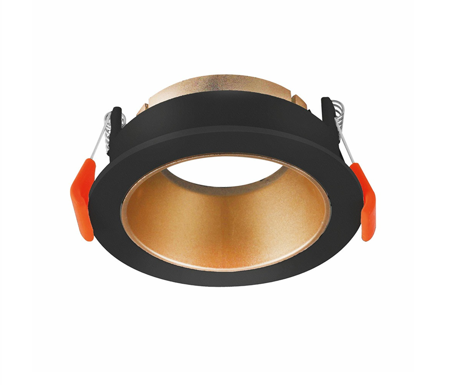Carcasă rotundă negru/auriu pentru becuri GU10 și GU5.3, fabricată din aluminiu de calitate superioară.