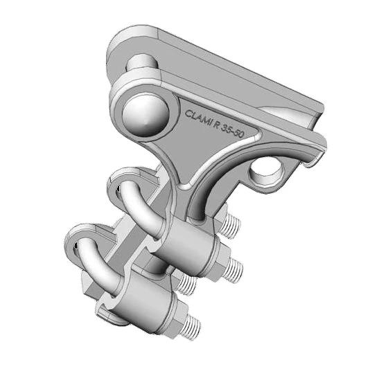 Clema amagnetică de întindere tip CLAMI R 35-50 este utilizată la realizarea legăturilor din LEA MT, în componenta lanțurilor de întindere sau tracțiune cu izolatoare compozite RICIS, asigurând prinderea și întinderea conductorului în construcția LEA MT.