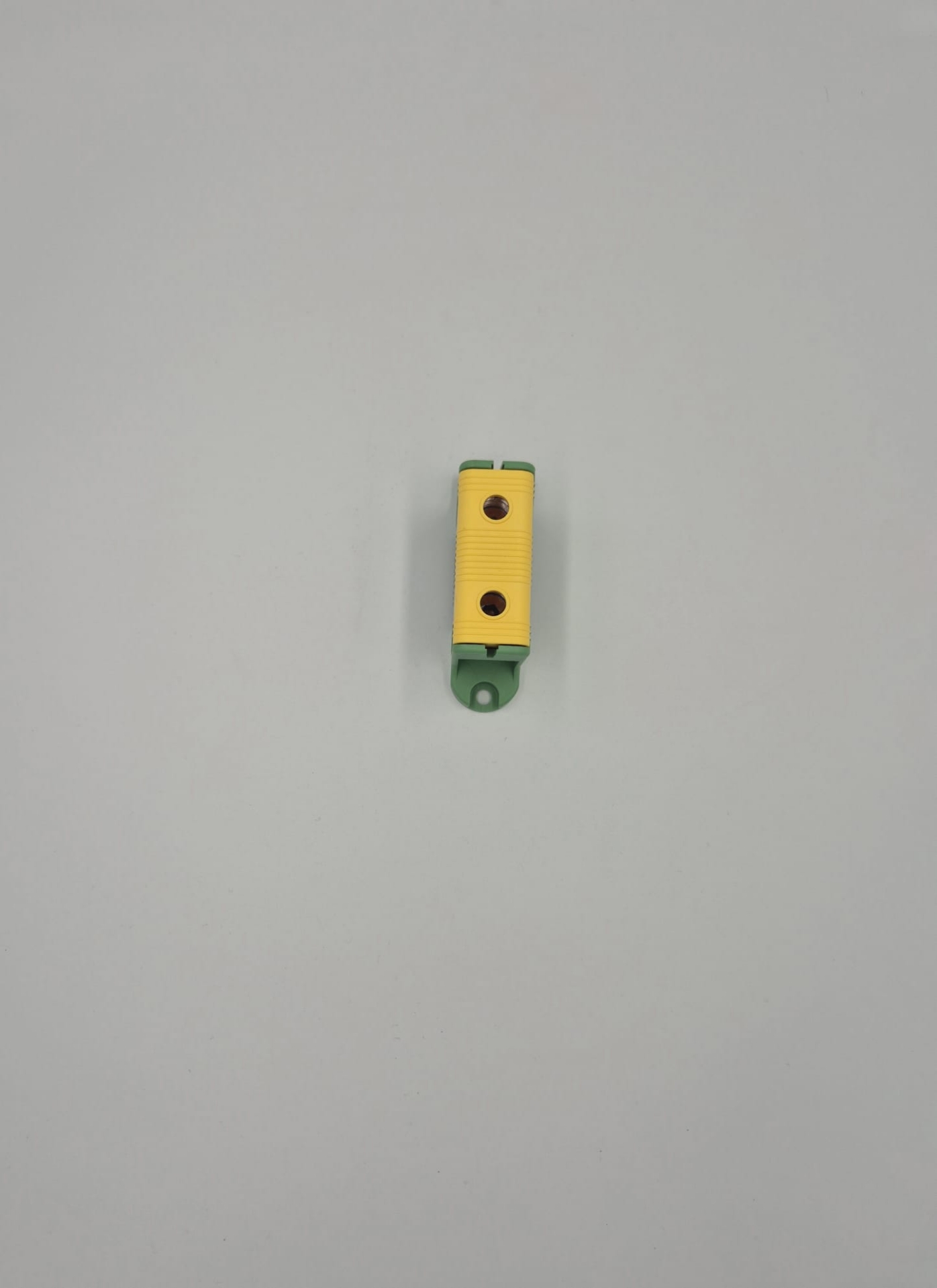 Clema terminală 1P galben-verde Cu-Al 16-95mm², 6 găuri, montaj pe șină DIN 35mm, 290A (Al) / 320A (Cu), șurub imbus.