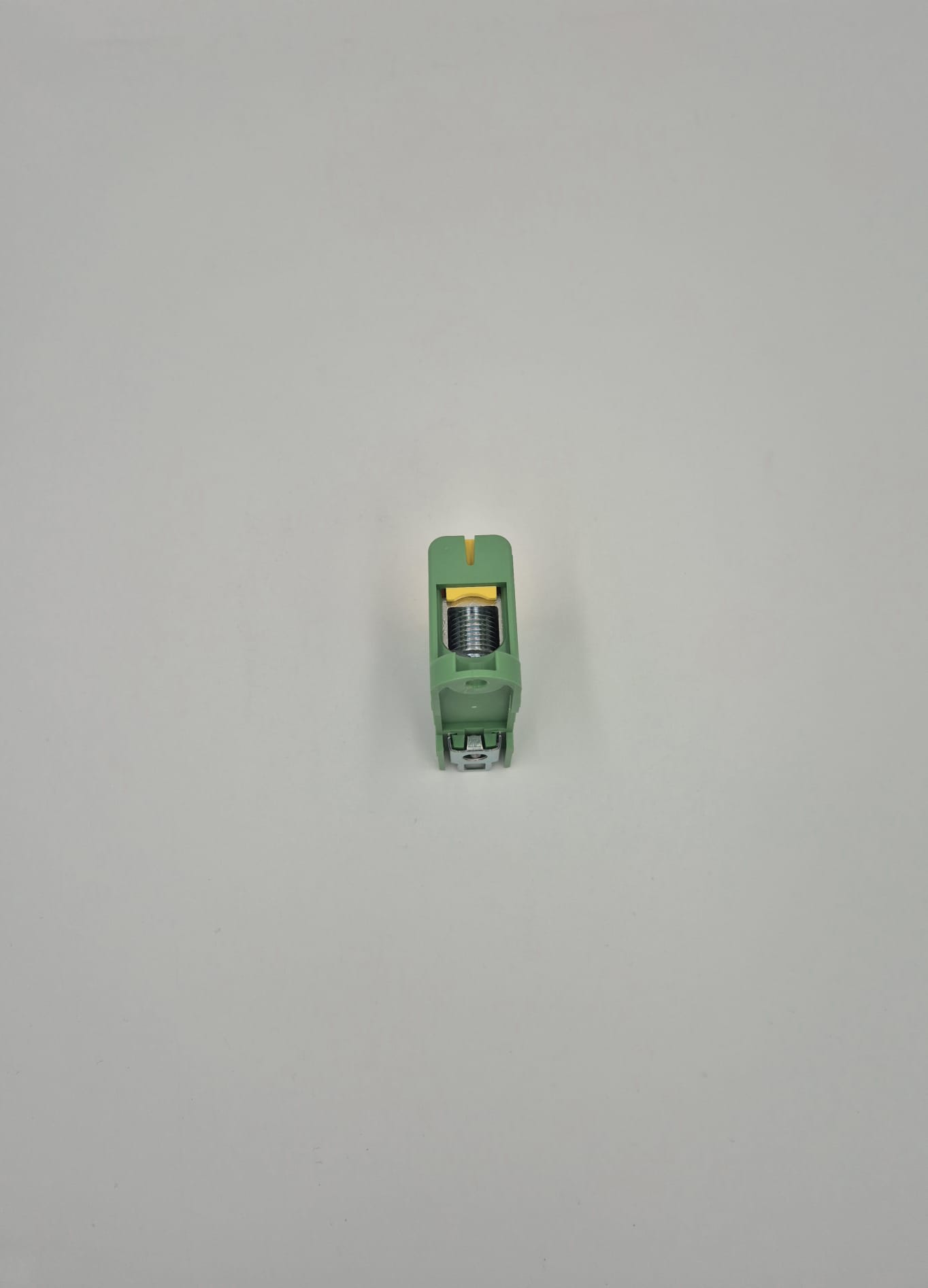 Clema terminală de conexiune cu un pol, de culoare galben-verde, este destinată conectării conductorilor din cupru și aluminiu cu secțiuni cuprinse între 16 și 95 mm². Aceasta dispune de 6 găuri pentru conexiuni multiple și se montează pe șină DIN de 35 mm. Clema suportă un curent nominal de 290A pentru conductori din aluminiu și 320A pentru cei din cupru, fiind echipată cu șurub imbus pentru o fixare sigură.
