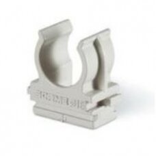 Clema de fixare Scame de 20 mm, fabricată din PVC gri de înaltă calitate, ideală pentru fixarea sigură a tuburilor în diverse aplicații electrice.