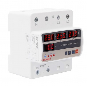 Comutator de transfer automat Sinotimer, 4 poli, 63A, pentru comutare rapidă între surse de alimentare în sisteme trifazate.