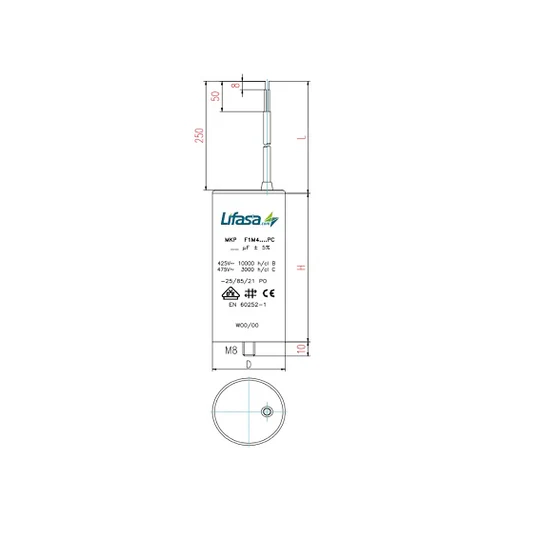 Condensator pentru motoare monofazate, cu capacitate de 55 mF și tensiune de operare de 450V. Dimensiuni: 45x117 mm. Ideal pentru diverse aplicații industriale și casnice.