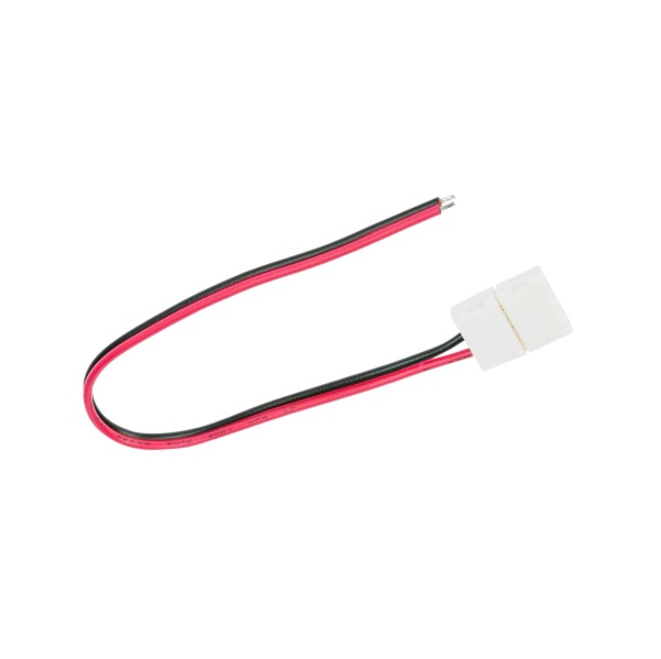 Conector cu cablu pentru bandă LED monocoloră de 8mm, instalare rapidă fără unelte, dimensiuni compacte și cablu de 145mm.