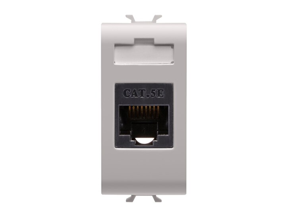 Priză de date RJ45 de categoria 5e, UTP, de culoare bej satinat natural, parte a gamei ChoruSmart de la Gewiss.