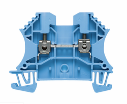 Conector șină DIN albastru 10mm², 57A pentru tablouri electrice.