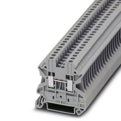 Borne de conexiune cu șurub, 2 puncte, 2,5mm², gri, montaj pe șină DIN, material termoplastic, conform standardelor IEC 60947-7-1 și RoHS.