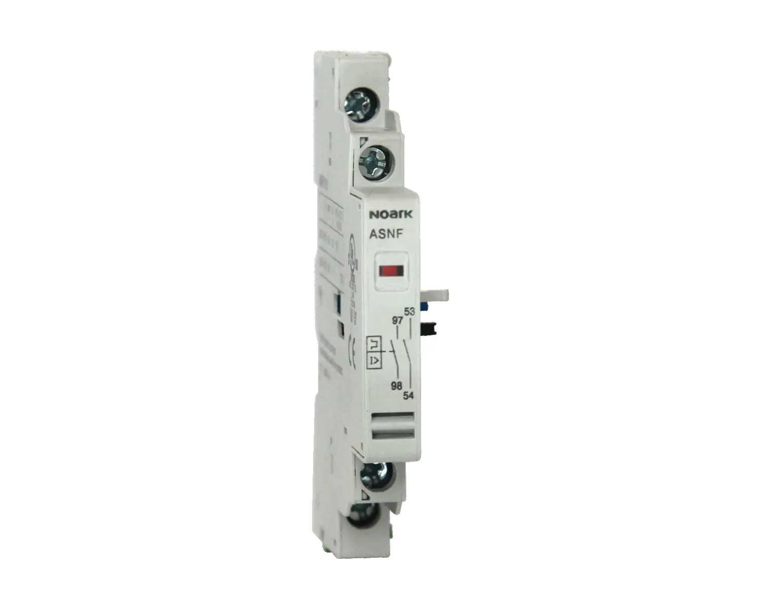 Contact auxiliar de semnalizare defect 1NO (Fault) + 1NC (Aux) pentru Ex9SN 108964 ASNF1001 de la Noark, ideal pentru monitorizarea echipamentelor electrice.