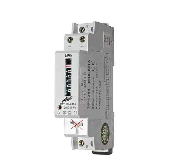 Contor monofazat analogic 1x45A, montaj pe șină DIN, 1 modul, pentru măsurarea energiei active.