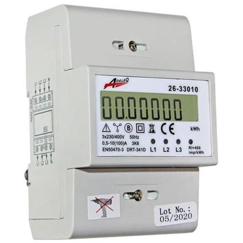 Contorul trifazic digital Adeleq 02-552/DIG este un dispozitiv de măsurare a energiei electrice active consumate în rețelele trifazate. Acesta este echipat cu un afișaj LCD clar, care permite citirea ușoară a consumului de energie în kilowați-oră (kWh). Cu o intensitate de funcționare cuprinsă între 6 A și 100 A și o clasă de precizie 1, acest contor asigură măsurători exacte și fiabile.