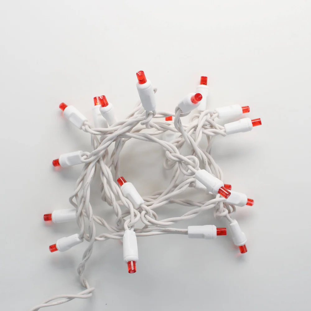 Cordon luminos TX5.2 cu 15 LED rosii, lungime 1.5m, cablu alb si conexiune S-OUT. Ideal pentru decoratiuni interioare sau evenimente tematice.