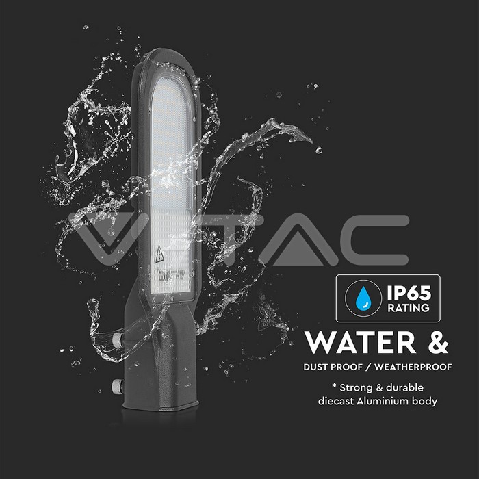 Corpul de iluminat stradal LED de 50W cu cip Samsung oferă o soluție eficientă și durabilă pentru iluminatul public. Cu un flux luminos de 4200 lumeni și o temperatură de culoare de 4000K, acest corp asigură o lumină albă naturală, ideală pentru străzi, intersecții, tuneluri și parcări. Fabricat din aluminiu de culoare neagră, are un grad de protecție IP65, fiind rezistent la praf și apă. Durata de viață este de 25.000 de ore, iar garanția oferită este de 3 ani.