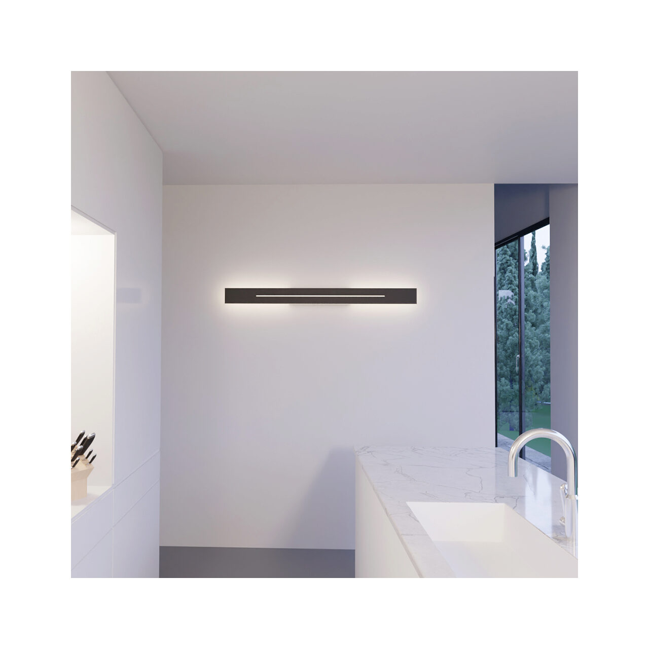 Aplica LED de perete Braytron, model LEVA-WL300-RCT, 10W, 3000K, negru, cod BR-BH07-03401. Fabricată din aluminiu, oferă un flux luminos de 700 lm și un unghi de dispersie de 120°. Dimensiuni: 300 mm lungime, 50 mm lățime, 40 mm înălțime. Grad de protecție IP20 și durată de viață de 20.000 de ore.