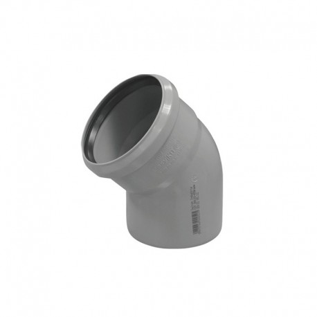 Cot PVC 75x45 pentru schimbarea direcției conductelor la 45 de grade în sistemele de canalizare.