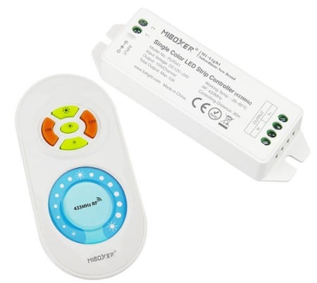 Telecomanda inclusă permite controlul simultan al mai multor receptoare, în funcție de setările efectuate, oferind astfel posibilitatea de a gestiona mai multe zone de iluminat cu un singur dispozitiv.