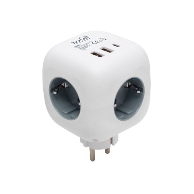 Distribuitorul cub CUBE1 este soluția ideală pentru alimentarea și încărcarea simultană a mai multor dispozitive. Cu un design compact și modern, acest distribuitor oferă trei prize cu protecție pentru copii și trei porturi USB (2x USB-A și 1x USB-C), permițând conectarea și încărcarea eficientă a dispozitivelor electronice.