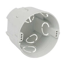 Doză de aparat/distribuție KPR68KA pentru montaj în pereți de gips-carton, fabricată din PVC fără plumb, auto-stingere în 30 secunde, diametru 73 mm, adâncime 66 mm.