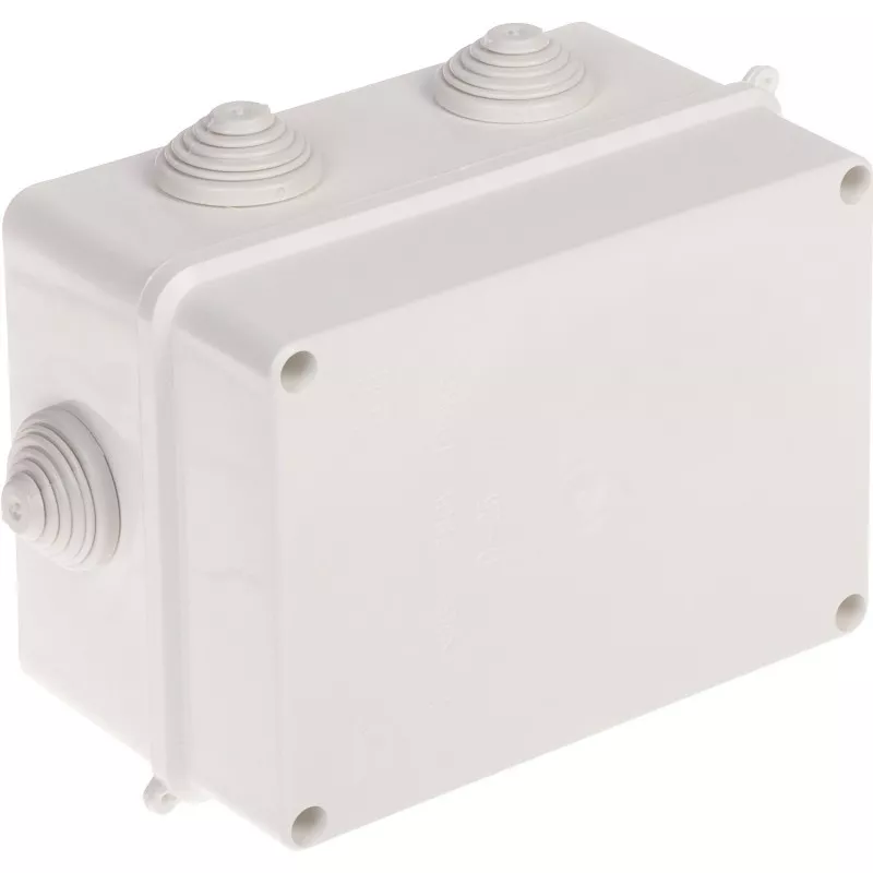 Doza de derivatie aplicata, cu dimensiunile 158x118x96 mm, echipata cu presetupe pentru o instalare ușoară și sigură. Fabricată din material plastic rezistent, oferă un grad de protecție IP64, fiind potrivită pentru utilizare în medii cu praf și umiditate moderată.