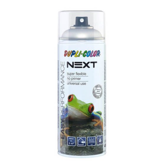 Vopsea spray Duplicolor Next RAL 9005 Negru Lucios, 400ml, cu aplicare ușoară și uscare rapidă, potrivită pentru diverse suprafețe.